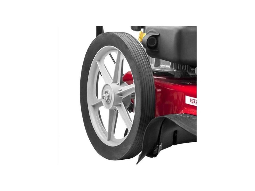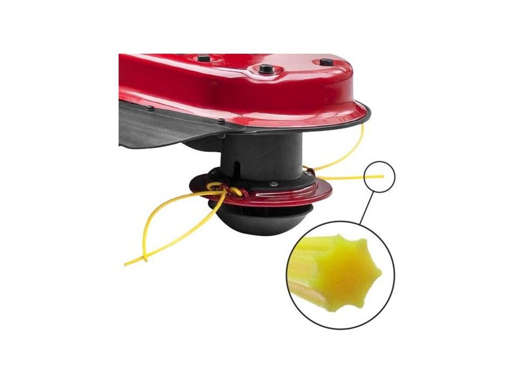 - Benzínová strunová kosačka so 4-taktným výkonným motorom má teleso z pevného oceľového plechu.