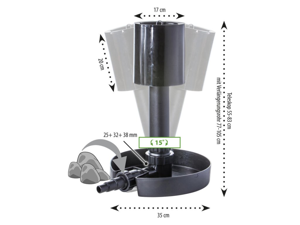 - Povrchový stojatý skimmer na zber nečistôt z hladiny.