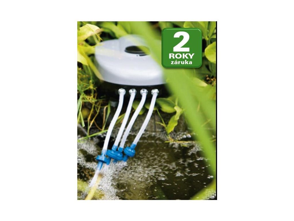 Prevzdušňuje a prečisťuje vodu pre optimálnu rovnováhu, zlepšuje výsledok filtrácie, pomáha živočíchom v jazierku počas sparných dní. V zime ako ochrana pred zamrznutím. Podporuje výsledok filtrácie. Pre jazierka do 12 m³. Vetranie s veľmi nízkou spotrebou energie. Možnosť regulácie výkonu priamo na prevzdušňovaní. Obsahuje 4 výstupy na prevzdušňovanie jazierka.