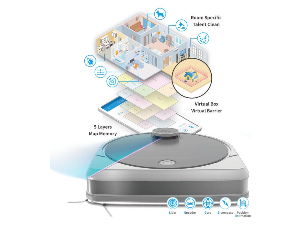 Dôležitou funkciou robotických vysávačov je orientácia a pohyb v priestore. Pokročilá navigácia LEGEE® SLAM meria, vyhodnocuje a optimalizuje dráhu čistenia pomocou LDS LiDAR, Encoder, Gyro a E-compass. Čistenie prebieha systematicky a čo najefektívnejšie bez zbytočných zdržaní.