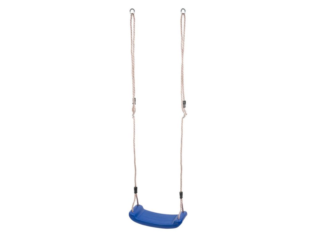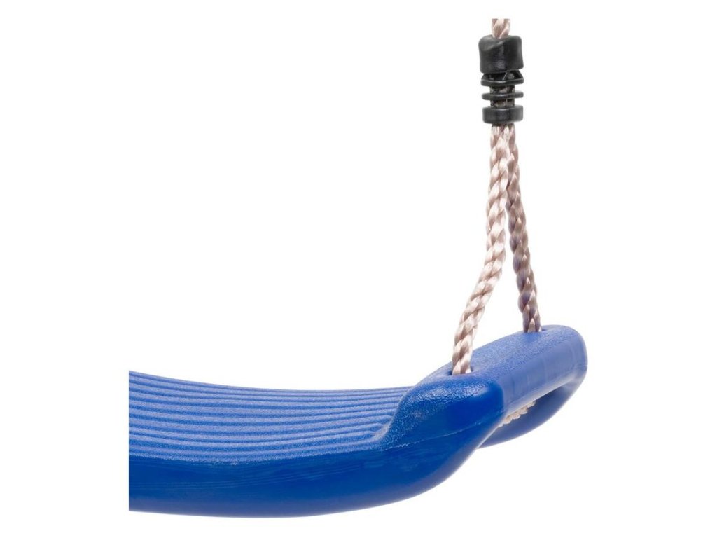Detská modrá plastová hojdačka je praktická, ľahko umiestniteľná takmer kdekoľvek vo vašej záhrade. Hojdačka nemá opierku a nemá ani prednú ochranu pred pádom, preto je potrebné na dieťa dávať pocelý čas pozor. Nosnosť hojdačky je 70 kg a jej rozmery sú 43 x 17 x 8,5 cm. Na oboch stranách sedacej časti sú pripevnené laná dlhé 2 m, s priemerom 10 mm. Je potrebné ich poriadne uviazať na miesto, kde chcete hojdačku mať. Uistite sa, že je pripevnená správne, nie príliš vysoko a že nehrozí riziko poranenia.