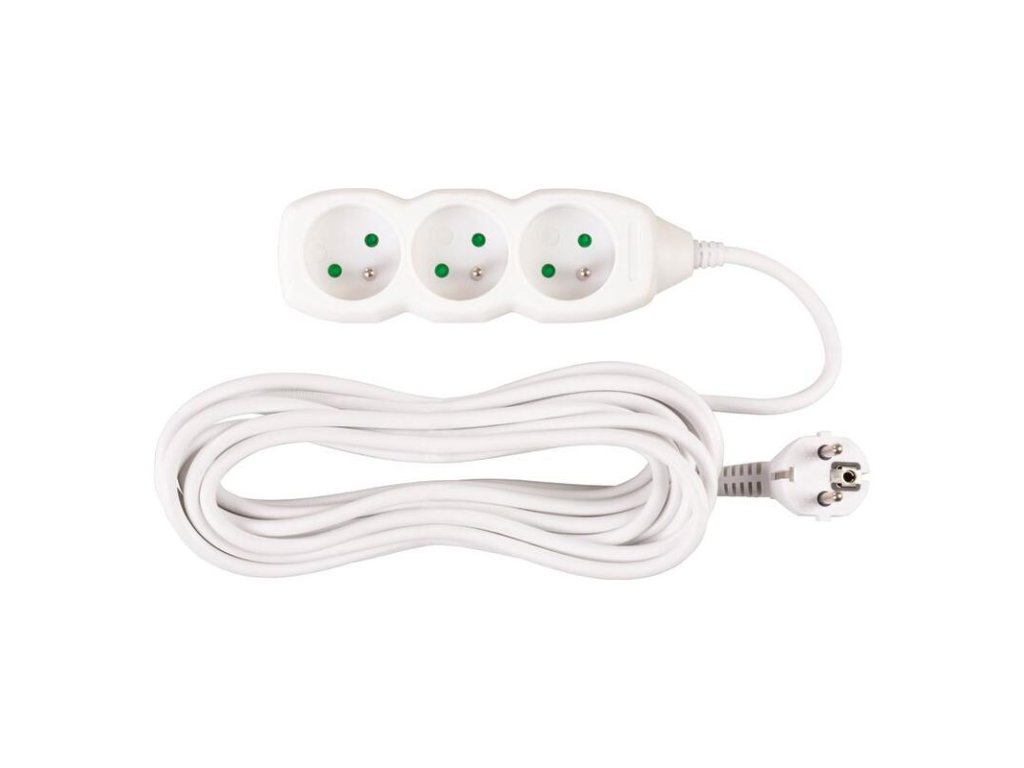 Praktický predlžovací kábel DG-F803B v bielej farbe zabezpečí prívod elektrickej energie až do dĺžky 7 metrov. Svoje využitie nájde v kanceláriách, ale aj v domácnostiach. Vďaka trom zásuvkám umožňuje pripojenie viacero zariadení naraz.