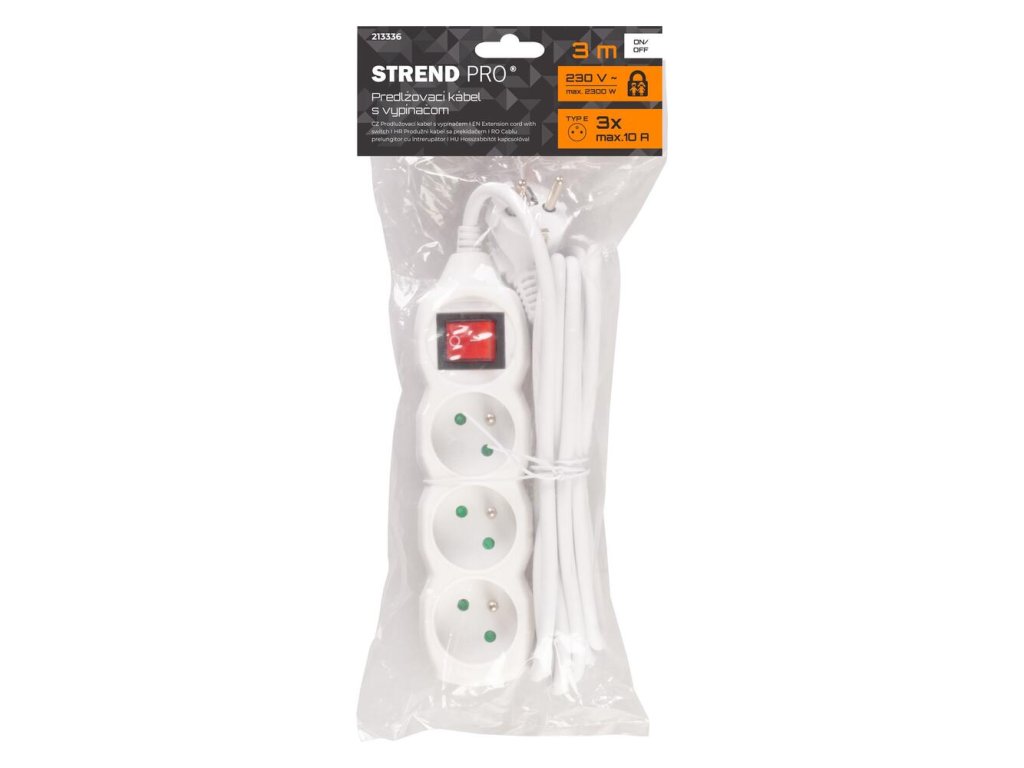Strend Pro DG-803BK predlžovací kábel 3,00 m, 3 sockets, HU, RO, SRB, CRO je určený pre krajiny s nemeckými zásuvkami typu F.