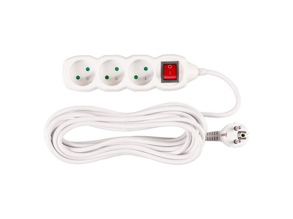 Praktický predlžovací kábel DG-F803B v bielej farbe zabezpečí prívod elektrickej energie až do dĺžky 7 metrov. Svoje využitie nájde v kanceláriách, ale aj v domácnostiach. Vďaka trom zásuvkám umožňuje pripojenie viacero zariadení naraz. Kábel disponuje praktickým ON/OFF prepínačom. Vypnutím hlavného vypínača prerušíte prívod elektrickej energie ku všetkým zapojeným spotrebičom.