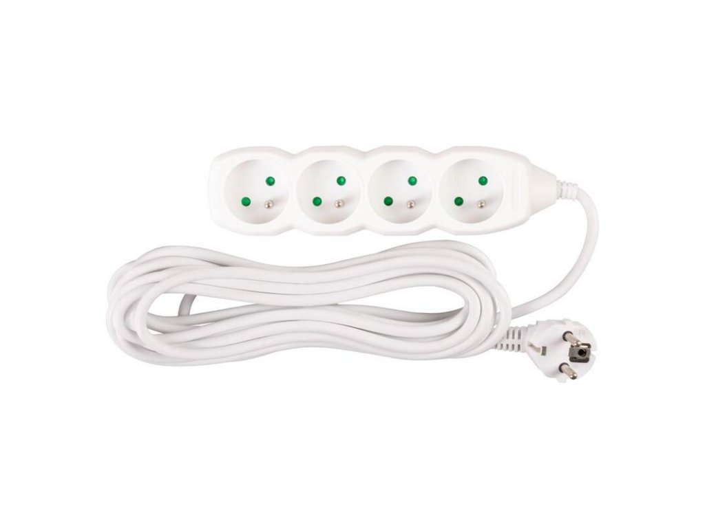 Praktický predlžovací kábel DG-F804B v bielej farbe zabezpečí prívod elektrickej energie až do dĺžky 5 metrov. Svoje využitie nájde v kanceláriách, ale aj v domácnostiach. Vďaka 4 zásuvkám umožňuje pripojenie viacero zariadení naraz.