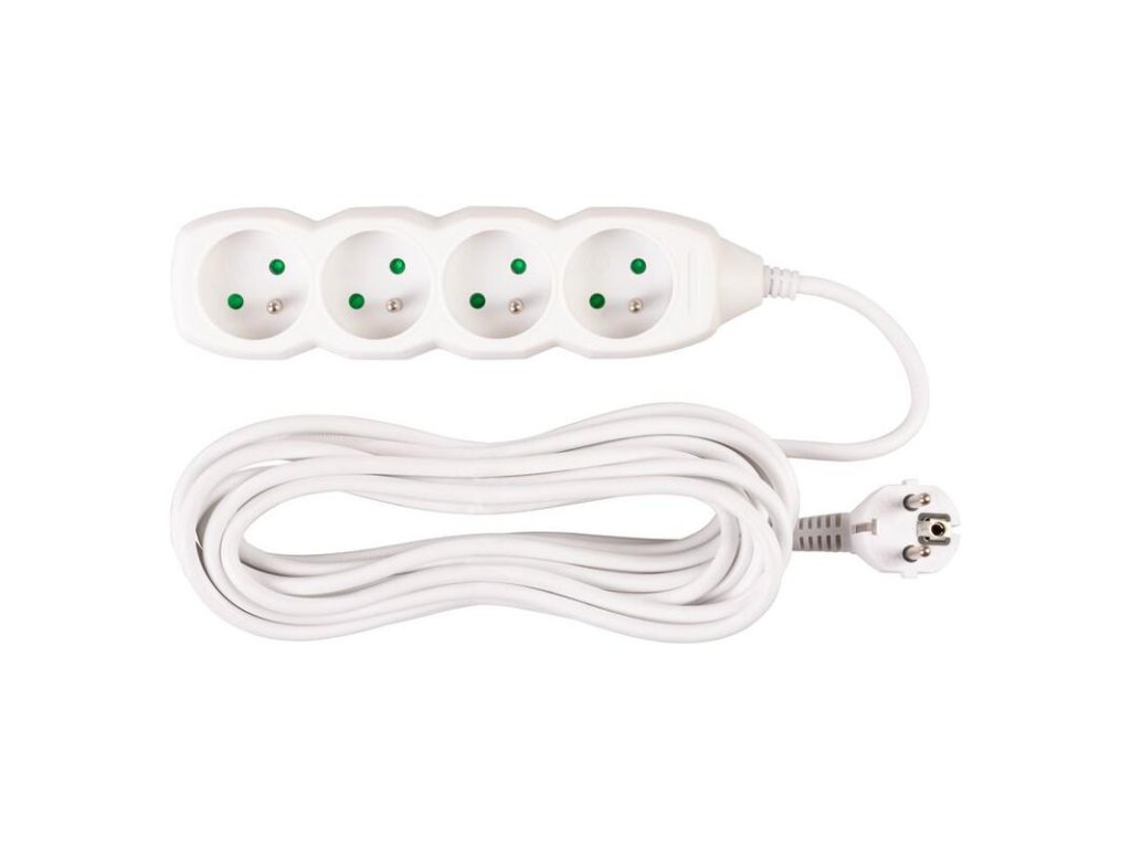 Praktický predlžovací kábel DG-F804B v bielej farbe zabezpečí prívod elektrickej energie až do dĺžky 7 metrov. Svoje využitie nájde v kanceláriách, ale aj v domácnostiach. Vďaka 4 zásuvkám umožňuje pripojenie viacero zariadení naraz.