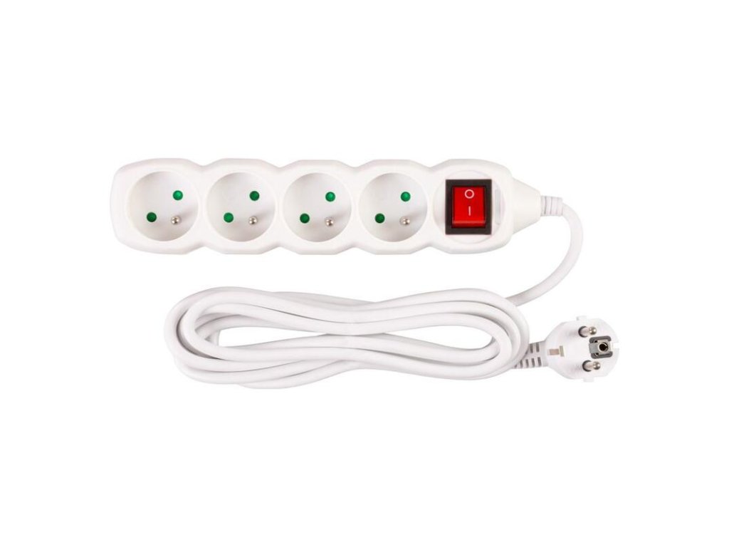 Praktický predlžovací kábel DG-F804B v bielej farbe zabezpečí prívod elektrickej energie až do dĺžky 3 metre. Svoje využitie nájde v kanceláriách, ale aj v domácnostiach. Vďaka 4 zásuvkám umožňuje pripojenie viacero zariadení naraz. Kábel disponuje praktickým ON/OFF prepínačom. Vypnutím hlavného vypínača prerušíte prívod elektrickej energie ku všetkým zapojeným spotrebičom.