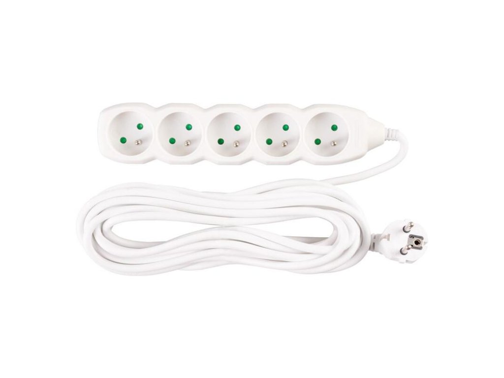 Praktický predlžovací kábel DG-F805B v bielej farbe zabezpečí prívod elektrickej energie až do dĺžky 7 metrov. Svoje využitie nájde v kanceláriách, ale aj v domácnostiach. Vďaka 5 zásuvkám umožňuje pripojenie viacero zariadení naraz.