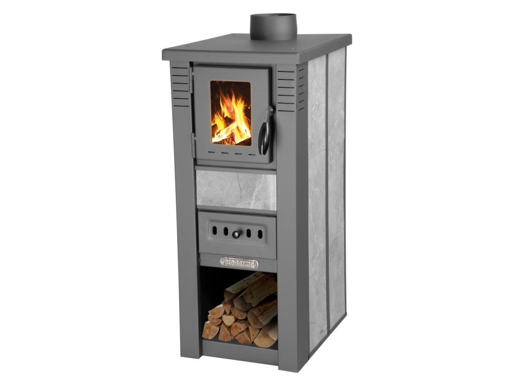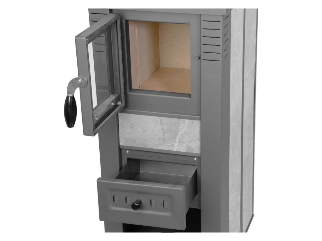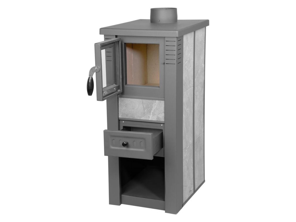 Strend Pro TAURUS Ceramic, Kachle šedé s rúrou na pečenie, 12 kW, 120 mm slúžia na vykurovanie, súčasťou je aj rúra na pečenie.