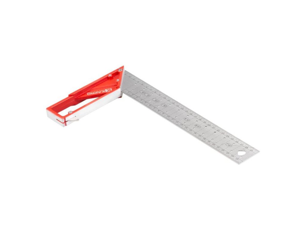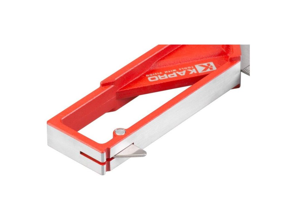 KAPRO 301 Uholník je vybavený pravítkom z nerezovej ocele, ktoré vám umožní merať v centimetroch, alebo palcoch