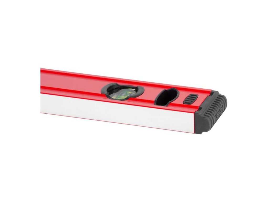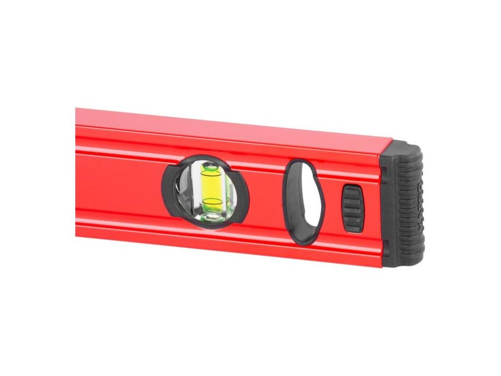 - Vodováha je vybavená tromi akrylovými libelami odolnými voči nárazom. Na jej koncoch sa nachádzajú gumové hrany, ktoré vynikajúco tlmia nárazy.