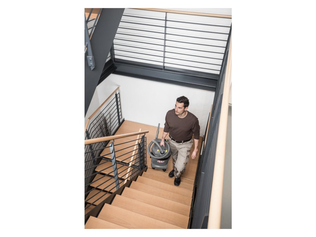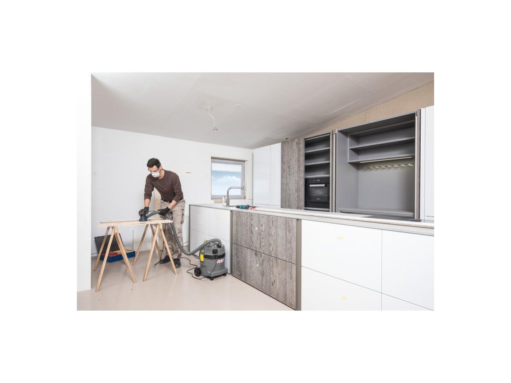 Remeselníci tohto malého siláka určite ocenia. Náš mokro-suchý vysávač NT 22/1 Ap Te disponuje prístrojovou zásuvka s automatickým vypínaním a zapínaním pre elektronáradie, je veľmi ľahký, a teda sa vždy jednoducho prepravuje, a navyše presviedča silným sacím výkonom pri ľahkých až stredne ťažkých čistiacich prácach. Či ide o prach, hrubú špinu alebo kvapaliny: Vďaka poloautomatickému oklepu filtra a PES patrónovému filtru odolnému proti vlhkosti spoľahlivo a dôkladne vybaví svoju prácu. Prípojka sacej hadice integrovaná priamo v hlave stroja pritom umožňuje maximálne využitie objemu nádoby. Týmto je tento jednoducho ovládateľný a všestranný NT 22/1 Ap Te ideálnym spoločníkom pri inštalačných a renovačných prácach, pri čistení budov a mnohom inom profesionálnom použití.