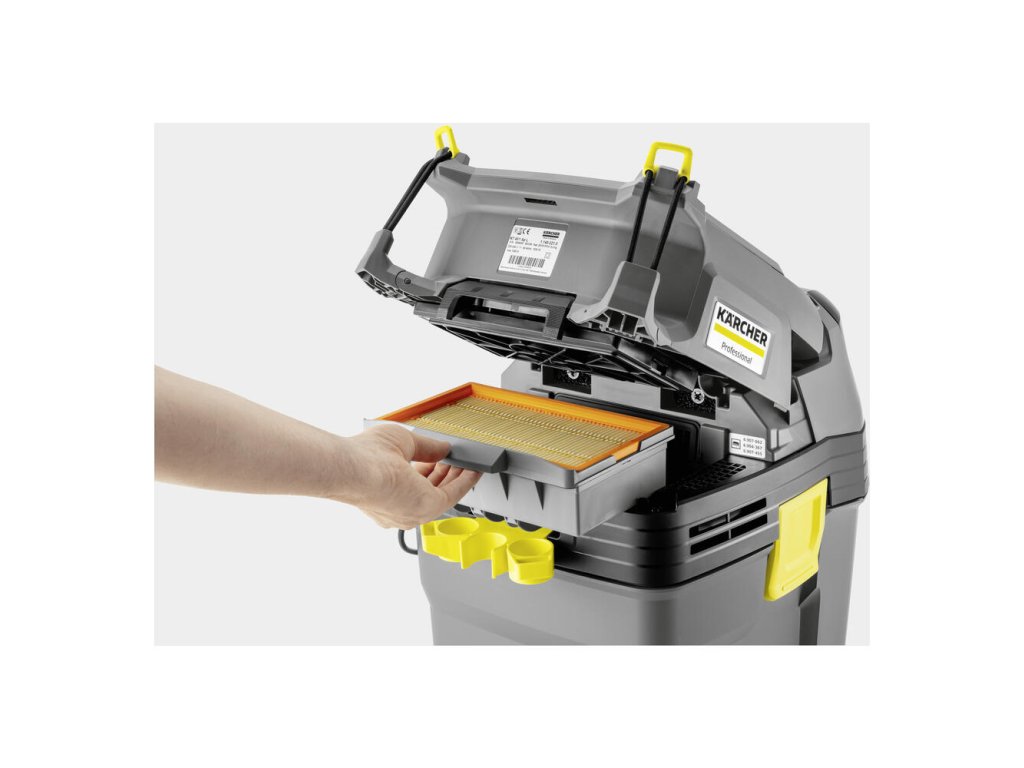 Náš NT 30/1 Ap L je kompaktný a kvalitný mokro-suchý strednej triedy s poloautomatickým oklepom filtra. Vysávač sa hodí na veľké množstvo použití, ako je čistenie interiéru áut, odstraňovanie veľkých nečistôt a kvapalín alebo na odsávanie strojov a zariadení. Pritom robí dojem extrémne dobrým sacím výkonom a vysoko efektívnym oklepom filtra, ktoré vo vzájomnej súhre dokonca dovoľujú odstraňovanie stredného množstva jemného prachu, dokonca aj bez filtračného vrecka. Tento stroj, ktorý sa veľmi jednoducho obsluhuje pomocou centrálneho prepínača, presviedča okrem toho svojou nízkou hmotnosťou a premysleným odkladaním kompletne novo vyvinutého príslušenstva – až po plochú hlavu, ktorá disponuje ďalšími možnosťami upevnenia a môže sa na ňu položiť a upevniť napríklad kufor na náradie.