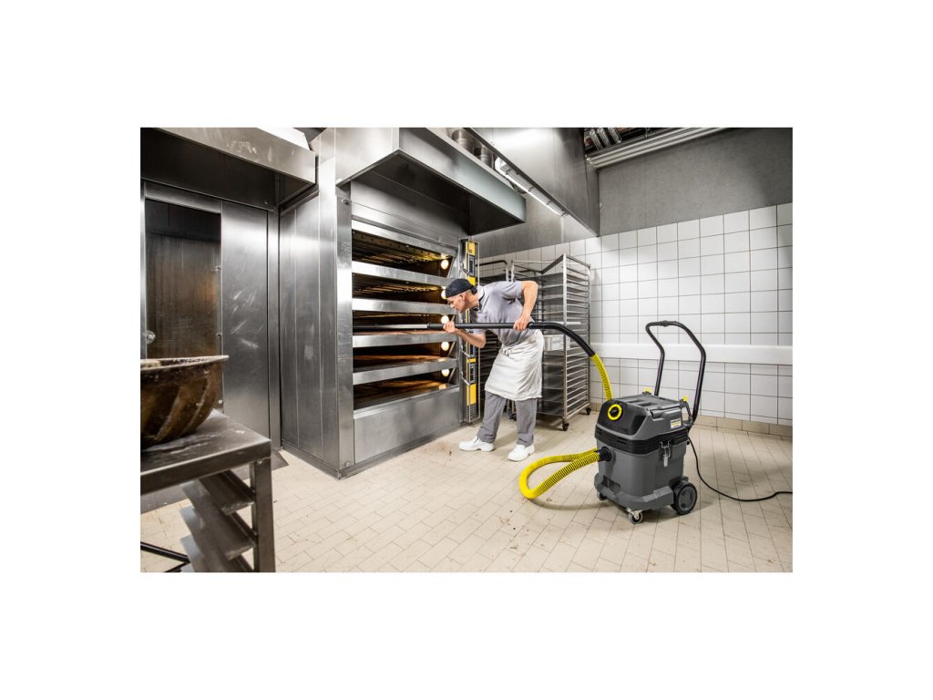 Vďaka nášmu vysávaču pre pekárne NT 40/1 Tact Bs môžu pekári a cukrári dýchať s úľavou. Či už podlahy, stroje alebo iné zariadenia – a s voliteľným príslušenstvom dokonca aj rúra: vysávač ľahko zvládne všetky výzvy, ktoré ho čakajú v pekárni. Vďaka robustnému kovovému zapínaniu je certifikovaný ako prístroj odolný voči výbuchu, a je preto vhodný aj na vysávanie potenciálne nebezpečného múčneho prachu. Automatické čistenie filtra Tact nielenže zaisťuje trvalo vysoký sací výkon, ale umožňuje aj vysávanie veľkého množstva jemného prachu. Okrem toho sa vysávač s centrálne umiestneným otočným spínačom ľahko ovláda, vydrží aj pri náročných prácach bez poškodenia vďaka robustnej nádobe a vďaka ergonomickému posuvnému držadlu sa mimoriadne ľahko prenáša.