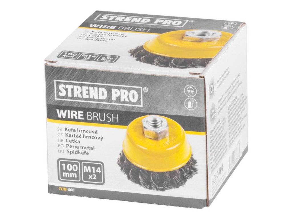Hrncová, vrkočová kefa Strend Pro by nemala chýbať vo výbave profesionálnych remeselníkov, ale aj domácich kutilov. Priemer kotúča je 100 mm s typom upnutia M14. Drôt je vyrobený z ocele s hrúbkou 0,5 mm. Typ kotúča je vrkočový. Maximálne povolené otáčky sú 8 500 rpm. Používa sa na odstraňovanie hrdze, korózie, farby a na očistenie povrchov.