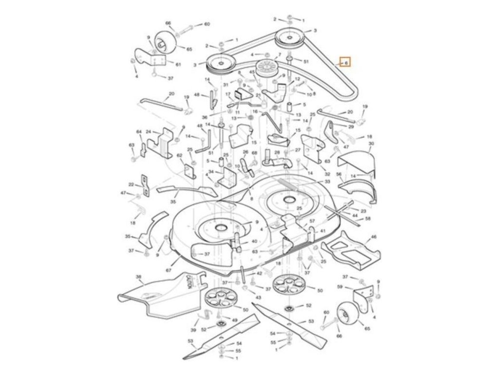 Klinový remeň pre pohon kosenia. Rozmer 12,7 x 2184 mm. Často používaný na 42" žacích ústrojenstvách.Alternatívne čísla (OEM): 037X66MA...