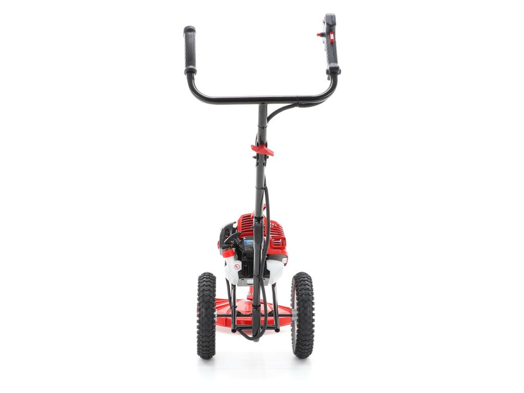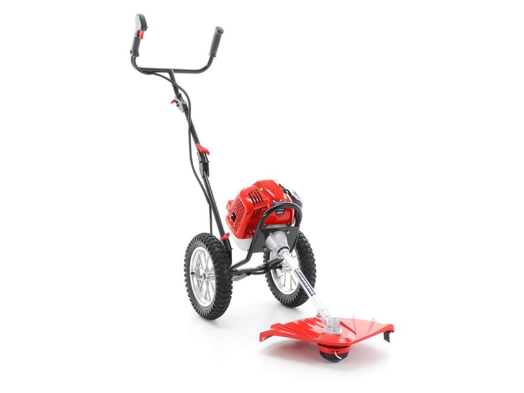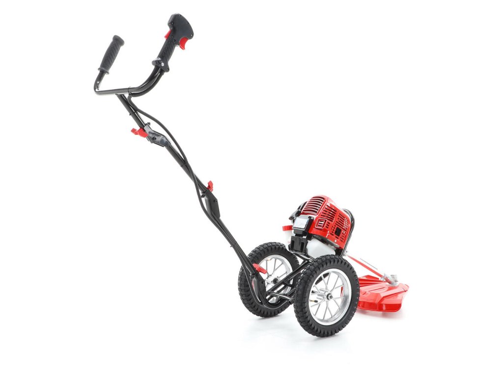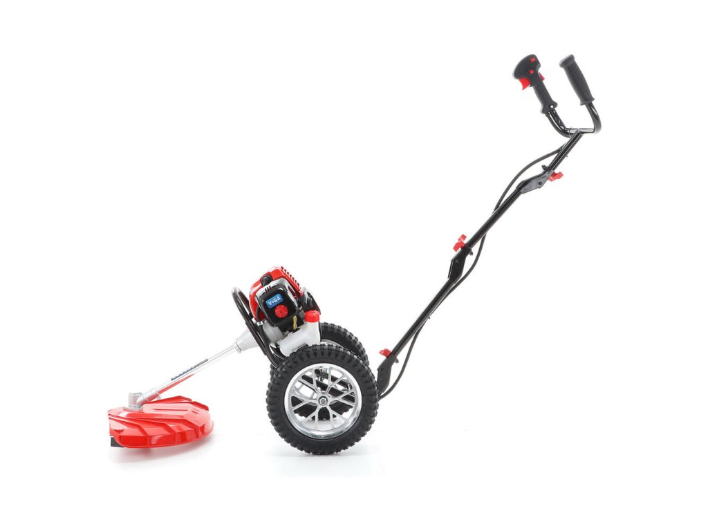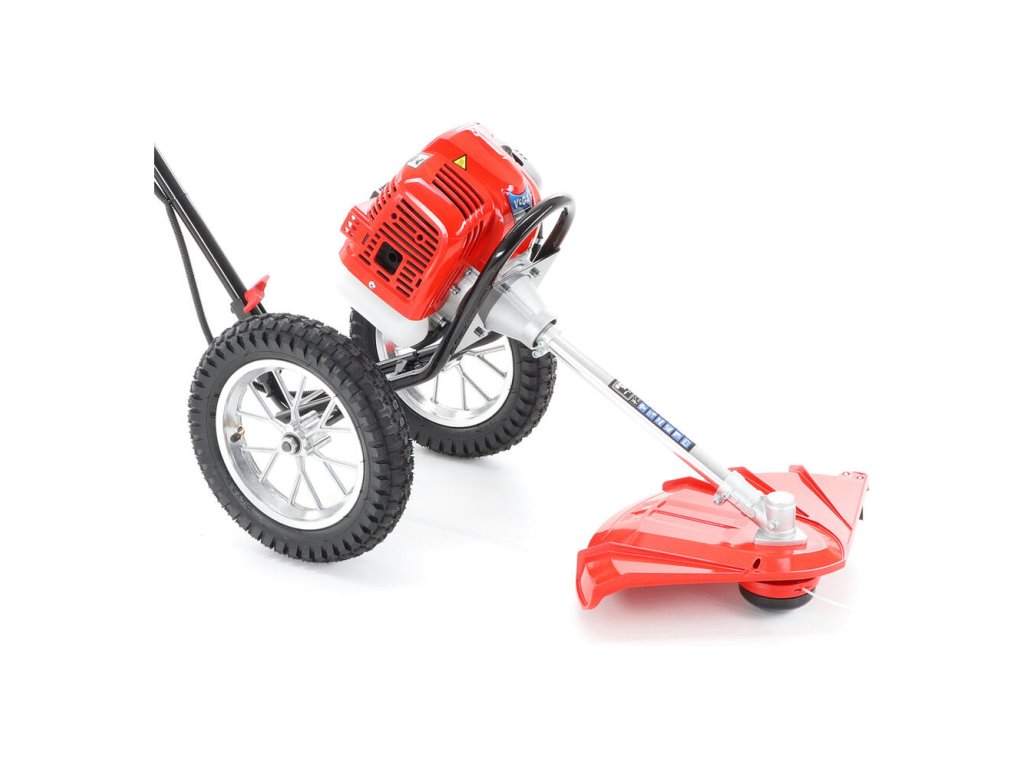 Kolesový vyžínač sa nezasekne na nerovnostiach a bez problémov spracuje aj trávu, ktorá je pre bežnú kosačku príliš vysoká alebo husto zarastená burinou.