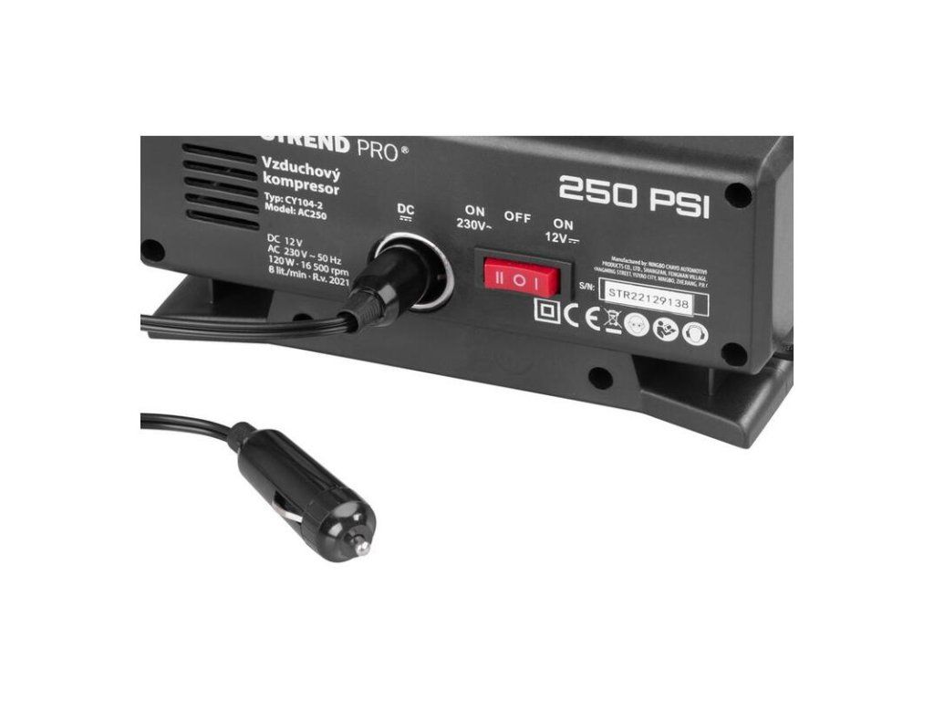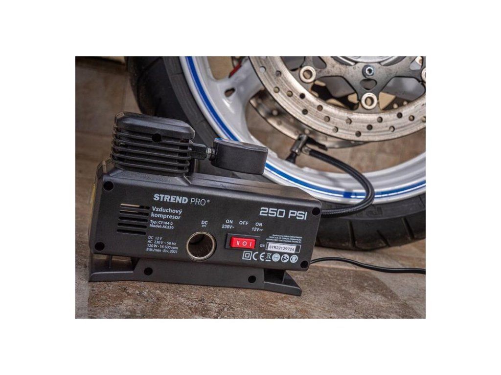 Vzduchový kompresor AIRCOM AC250 je spoľahlivým pomocníkom do každej domácnosti. Je vhodný na prácu so stlačeným vzduchom s tlakom až 250 PSI. Výhodou je jednoduchosť prevedenia, vďaka čomu sa zmestí takmer na každú poličku. Je vybavený 3,5 m dlhým káblom a meračom tlaku. Pre správne fungovanie ho stačí zapojiť do elektrickej siete (230 V/12 V) alebo do zásuvky zapaľováča čo oceníte na cestách.