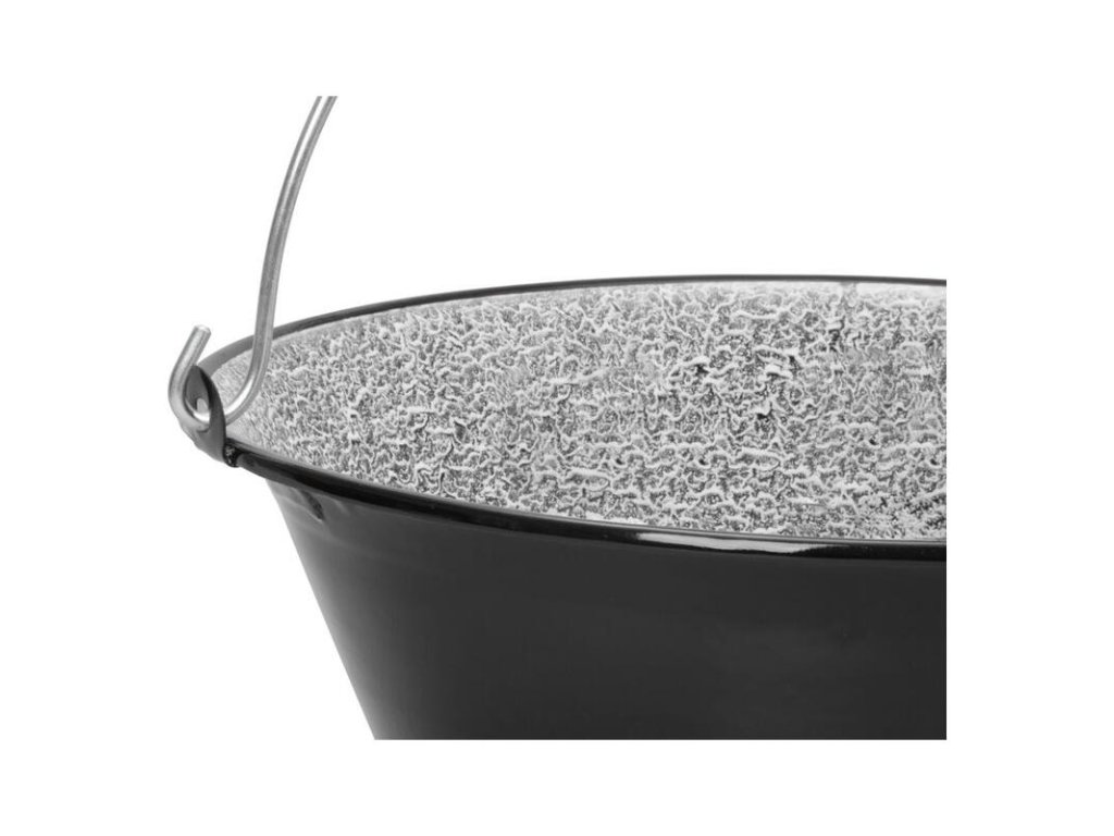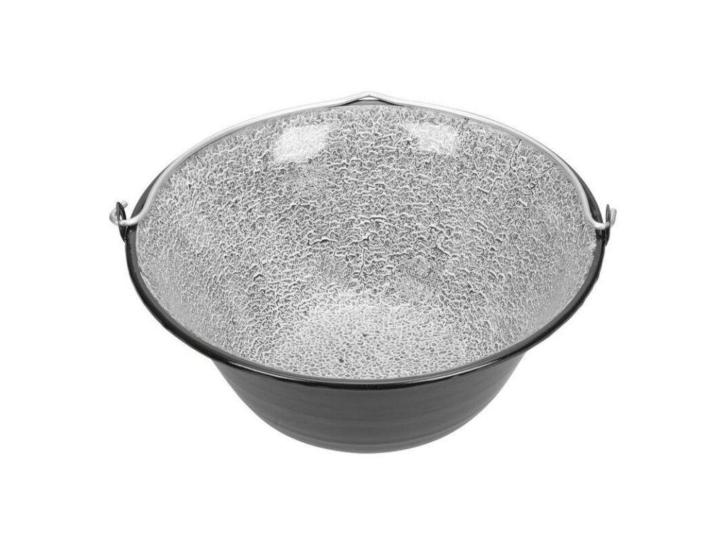Kovový kotlík 16 lit, smaltovaný na guľáš s pozinkovaným kovovým držadlom. Vhodný na prípravu jedla pri táborení v prírode, pri vode alebo v domácnosti.