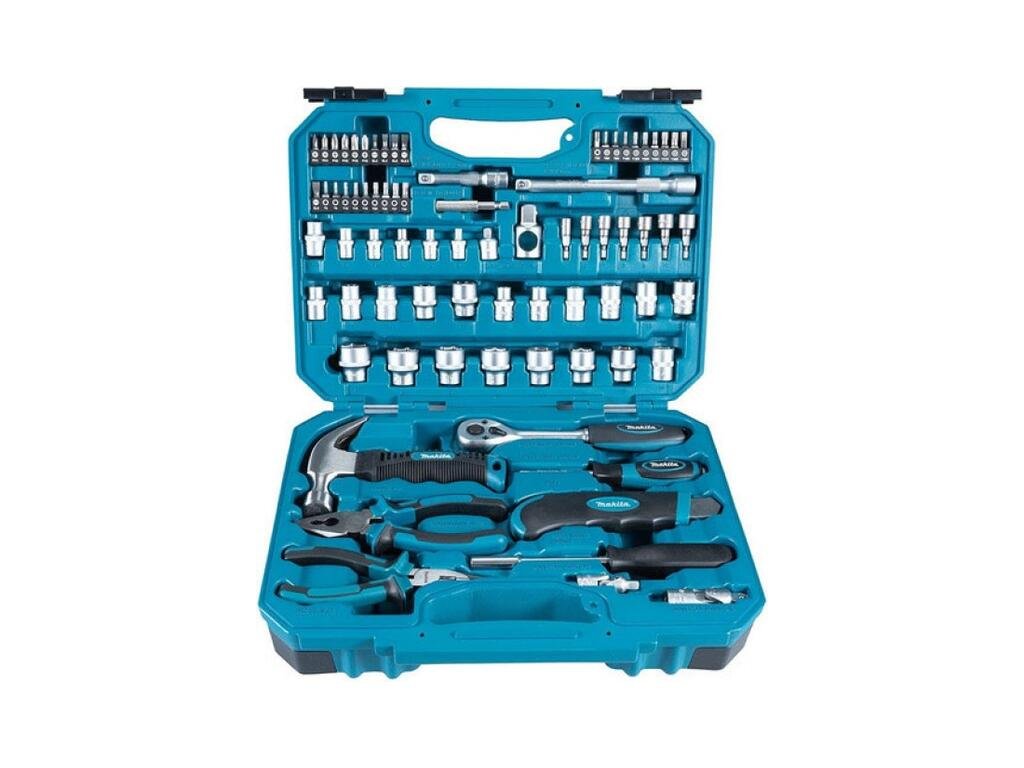 Makita E-10899 je kompletná 76-dielna súprava ručného náradia a príslušenstva, ideálna pre drobné opravy, montáže a domáce použitie. Náradie je vyrobené z chróm-vanádiovej ocele (Cr-V) pre dlhú životnosť. Sada obsahuje kľúčové nástroje ako kliešte, tesárske kladivko, račne 3/8" a rozsiahly sortiment orechov a bitov (SL, TX, THX, PH).