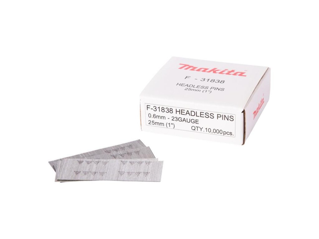 Makita F-31838 je balenie klincov typu Pinky s rozmermi 0.6 mm x 25 mm. Tieto klince sú špeciálne navrhnuté pre presné nastreľovanie do dokončovacích materiálov a líšt pomocou Makita klincovačiek. Balenie obsahuje veľké množstvo 10 000 ks.