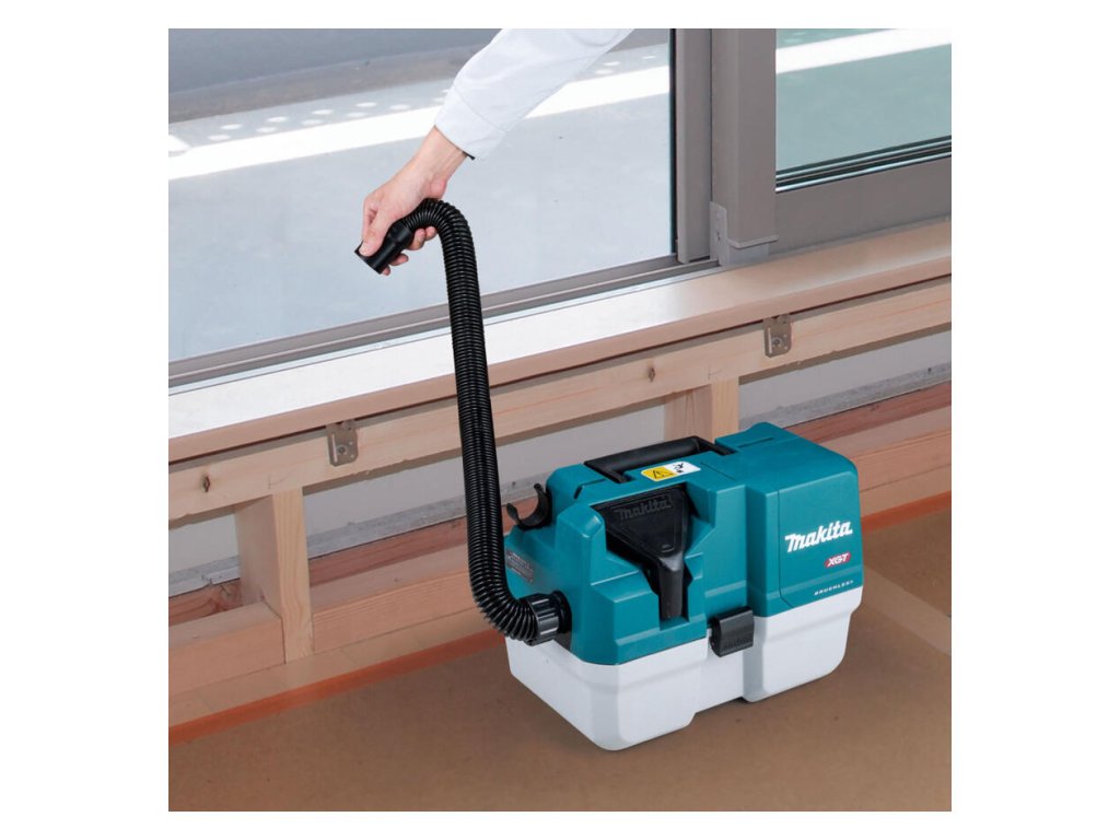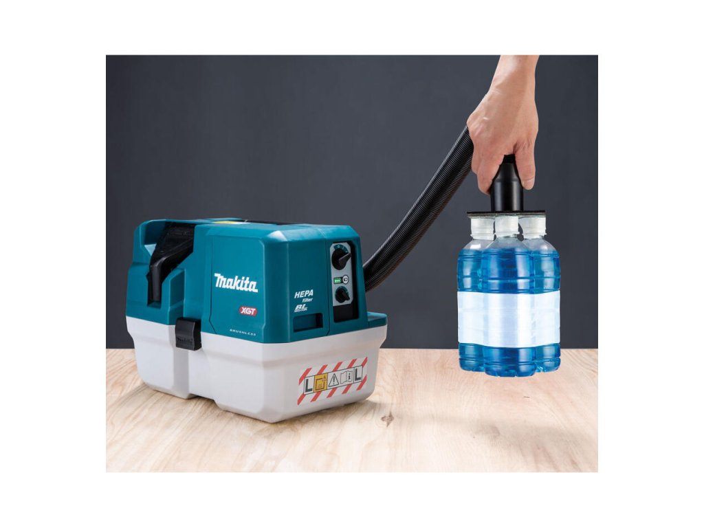 Makita VC013GLZ je robustný prenosný vysávač z platformy **XGT 40V max**, určený pre mokré aj suché vysávanie (trieda prachu L). Jeho maximálna sila sania dosahuje až 150 mbar a má bezuhlíkový motor.