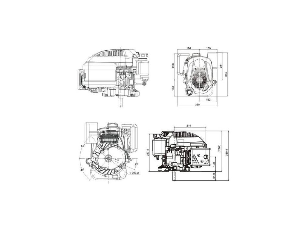 - Maximálny výkon: 6,5 HP (4,8 kW)