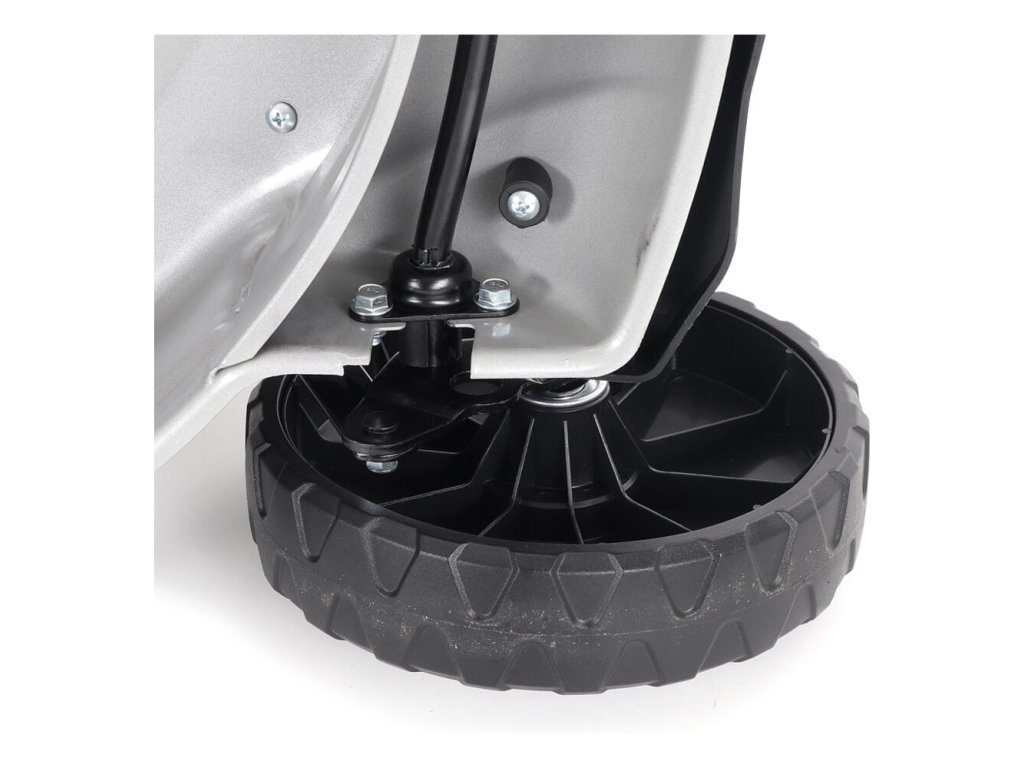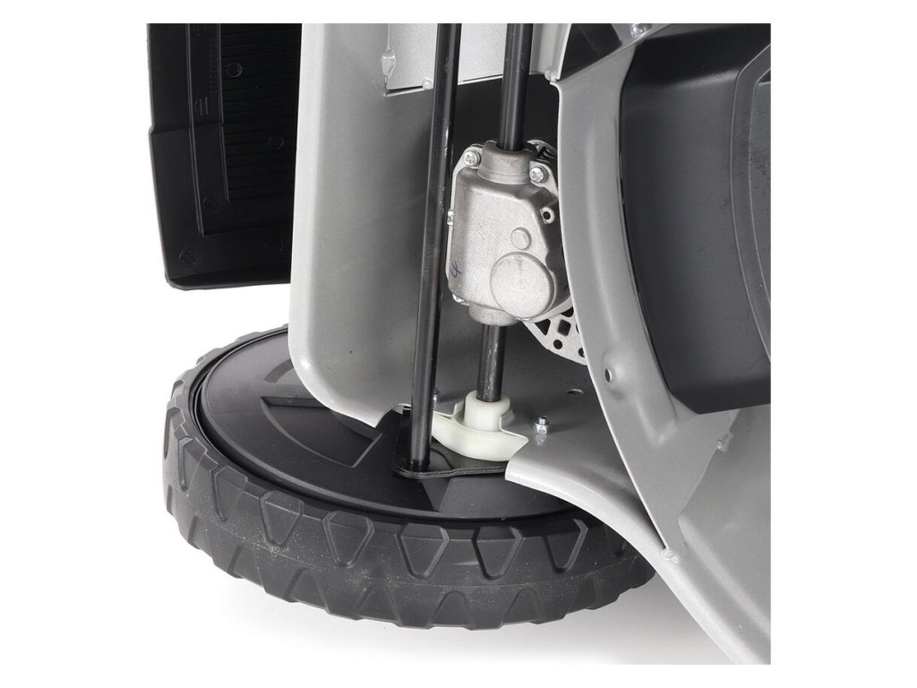 Vďaka variabilnému pojazdu a kolesám na dvojitých ložiskách je pohyb prekvapivo hladký. Kosačka si sama určuje tempo podľa terénu.