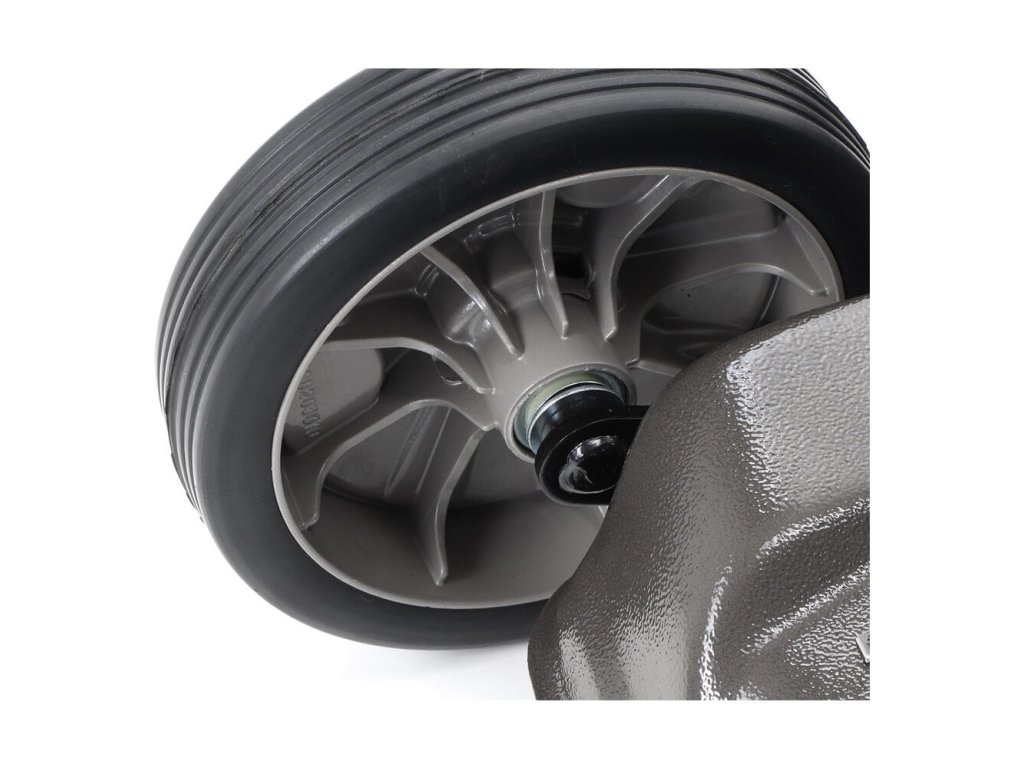 Sú prakticky nezničiteľné, nedeformujú sa časom a ložiská v nich sedia pevnejšie. To zabezpečuje presné vedenie kosačky aj po rokoch ťažkej práce.