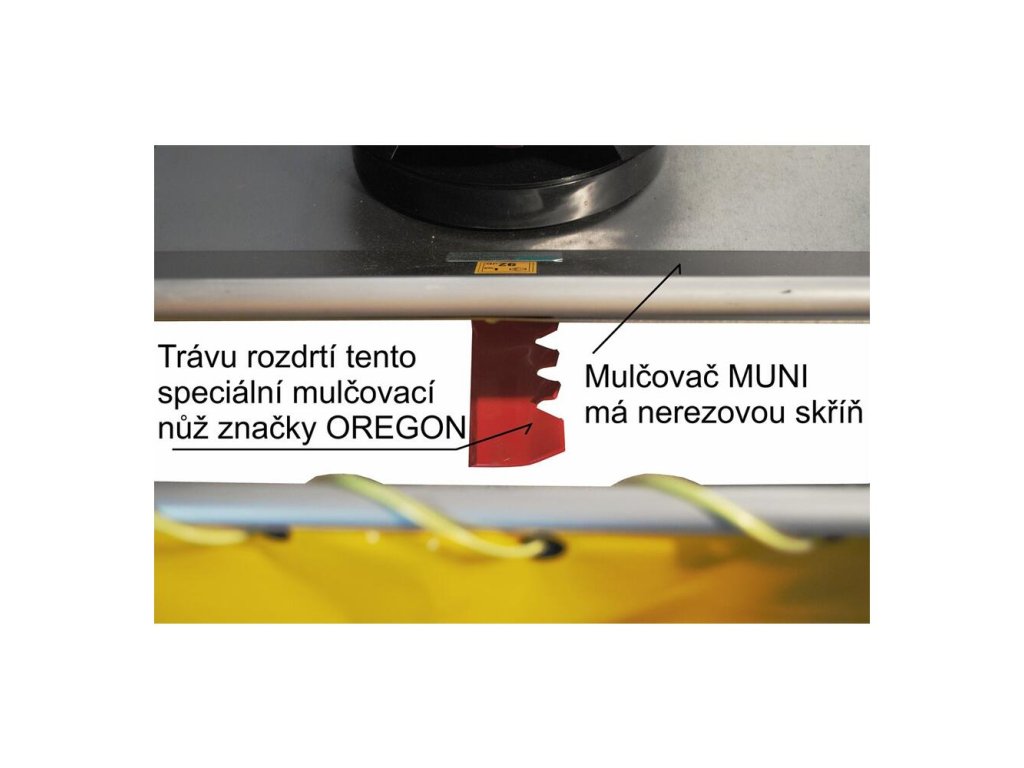 Áno, mulčovač vďaka nožu OREGON a nerezovému plášťu vytvára silný podtlak, ktorý efektívne nasáva a drví aj opadané lístie na trávniku.