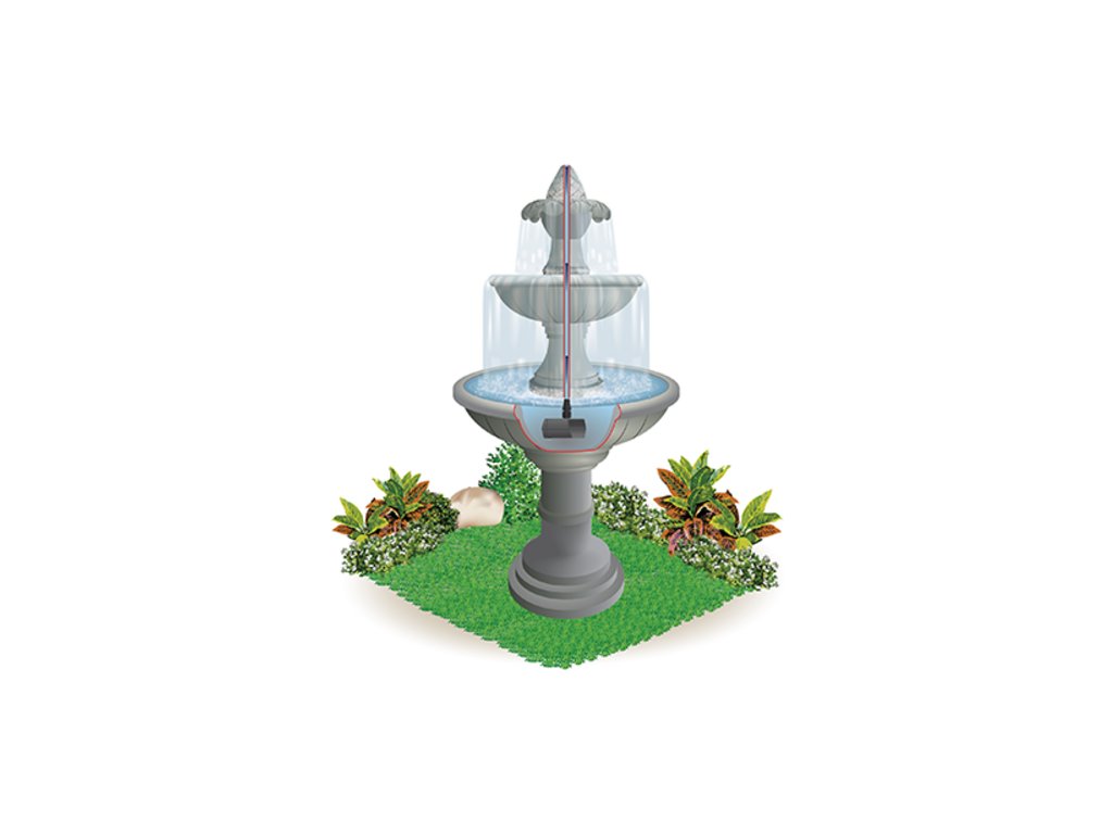 Má veľmi nízku spotrebu energie a vysoký stupeň účinnosti. Pri vývoji sa kládol dôraz na tichú prevádzku, funkčnosť a jednoduché čistenie. Čerpadlá sú určené na napájanie fontán, chrličov, terasových jazierok. Čerpadlo možno umiestniť do vody a vďaka dvom hadicovým prípojkám aj mimo vody. Pri napájaní fontán a chrličov oceníte možnosť regulácie prietoku vody. Vďaka kompaktným rozmerom ho ľahko umiestnite aj do malého priestoru, ľahko sa udržiava. Čerpadlo je vybavené synchrónnym motorom ECO, možnosť plochého sania.