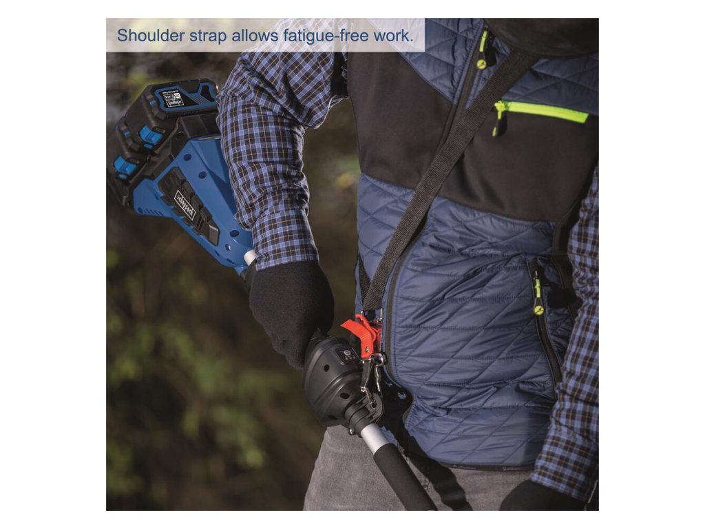 Vybavený moderným bezuhlíkovým motorom, systém poskytuje vysokú účinnosť a dlhú životnosť batérií.Dôležitý benefit: vďaka ovládaciemu panelu pri rukoväti bleskovo nastavíte rýchlosť pre každý typ práce, zatiaľ čo ergonomický ramenný popruh zabezpečí pohodlné dokášanie a rezanie bez nadmernej únavy.
