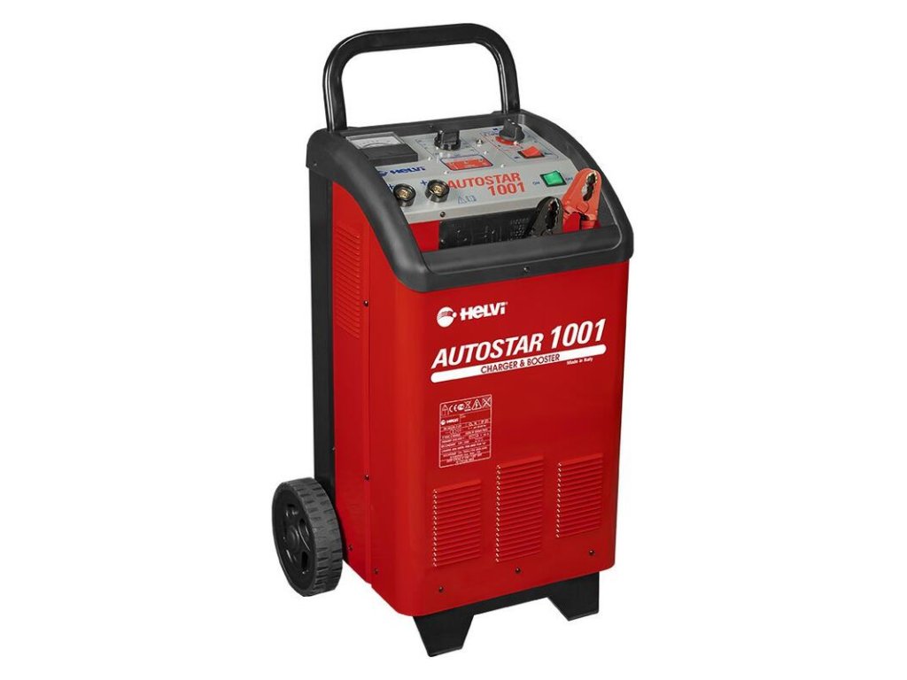 HELVI AUTOSTAR 1001 je vysokoprofesionálna patentovaná prenosná nabíjačka autobatérií na kolieskach s pomocným štartovaním a automatickou funkciou štartovania pre 12/24V akumulátory.