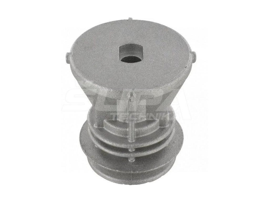 Tento náboj noža (unášač) slúži ako spojovací prvok medzi motorom a žacím nožom kosačky. Je vybavený strižnými výstupkami, ktoré chránia kľukový hriadeľ motora v prípade nárazu noža na pevnú prekážku. Diel je vyrobený z pevnej zliatiny pre dlhú životnosť. Správny stav unášača je dôležitý pre bezpečnosť pri kosení a zamedzenie vibrácií kosačky.Hlavné vlastnosti:
