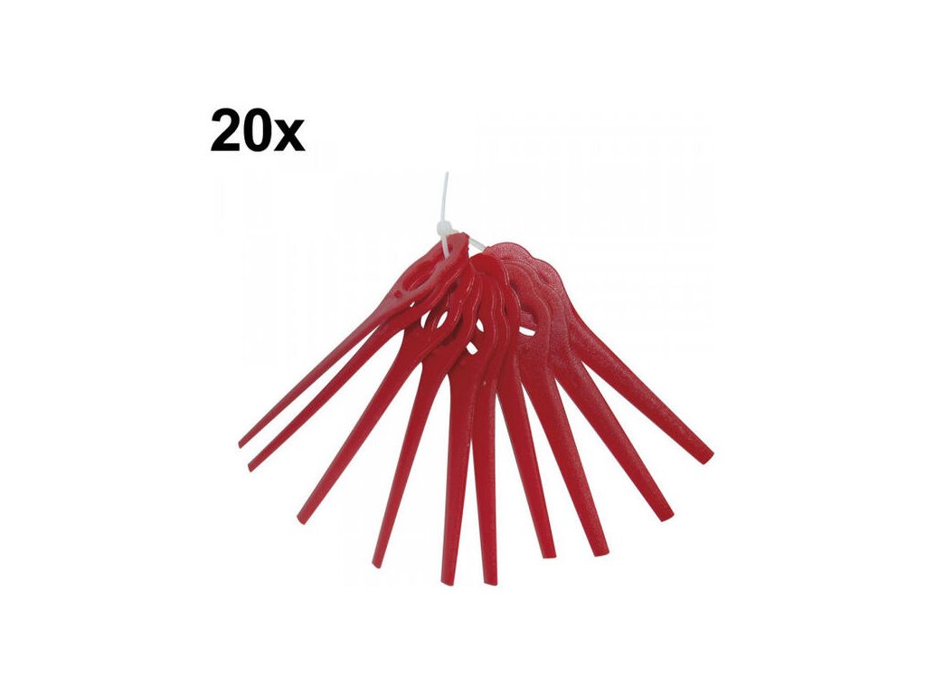 S touto sadou 20 kusov budete pripravení na celú sezónu údržby vašej zelene. Plastové nože sú ideálnou alternatívou k žacím strunám, pretože ich výmena je otázkou sekúnd. Transformujte vlastnosti vášho stroja na maximálny benefit vďaka ostrým nožom, ktoré trávu nesekajú, ale čisto odstrihnú.Hlavné vlastnosti a výhody náhradných nožov GUDE 95793