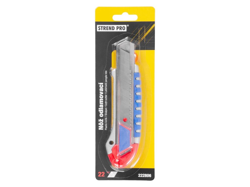 Odlamovací nôž Strend Pro by nemal chýbať vo vašej dielni. Disponuje kovovou vodiacou lištou, vysuvnou čepeľou, bezpečnostnou aretáciou, ergonomickou rukoväťou a plastovým krytom. Zaručuje skvelý výsledok a bezpečnú prácu. Šírka čepele je 22 mm. Čepeľ je vyrobená z hliníka.