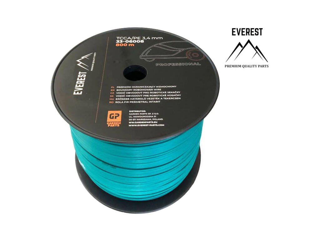 Toto je 800 m káblový bubon s priemerom 3,4 mm pre obvodový kábel, kompatibilný so všetkými modelmi robotických kosačiek. Kábel je nevyhnutný pre ohraničenie pracovnej plochy robota. Jedná sa o kvalitný a odolný kábel TCCA/PE.