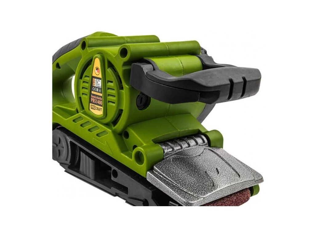 Pásová brúska PBS1400 je určená na výkonné rovinné brúsenie drevených materiálov - trámov, dosiek, lamiel a doskových materiálov. Je vybavená textilnou nádobou na prach, do ktorej sa odsáva brúsený materiál. Brúska je vybavená elektronickou reguláciou otáčok, ktorá v kombinácii so správne zvoleným brúsivom zaručuje kvalitný výsledok práce. Súčasťou balenia je brúsny pás.