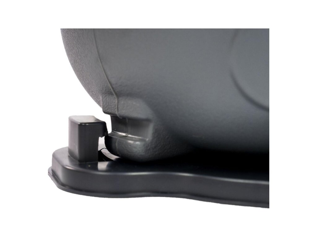 Filtračná nádoba je namontovaná na stabilnom podstavci, ku ktorému je bezpečne pripevnená otočným zámkom.