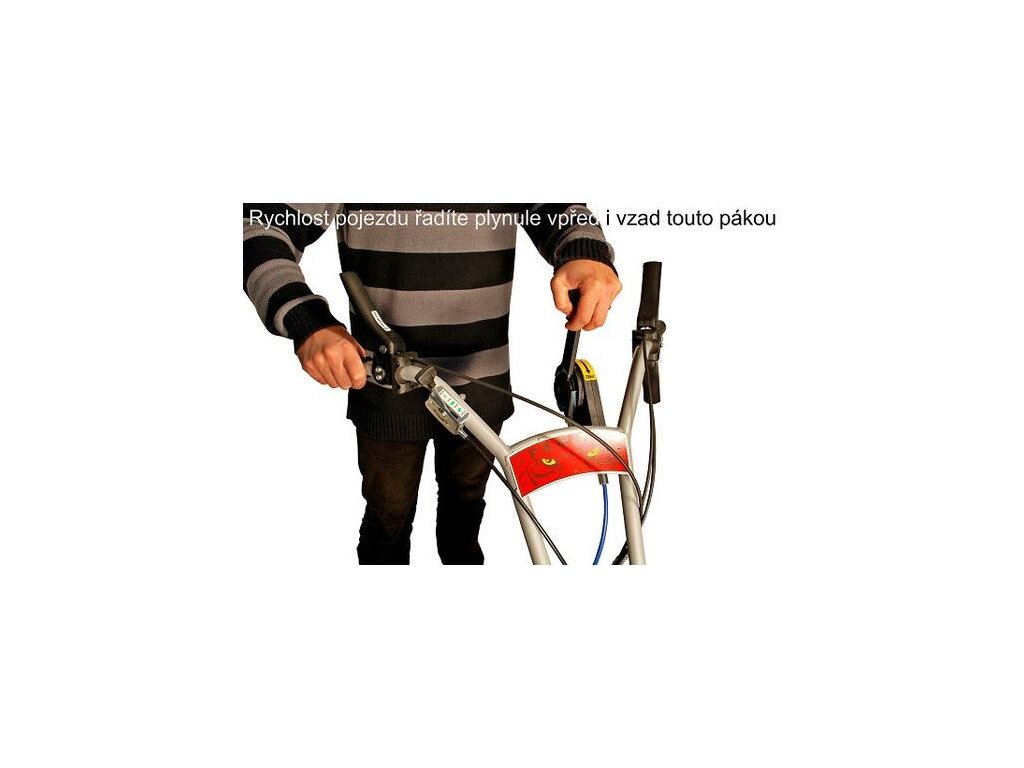 ✔️ Hydrostatický pojazd ovládaný pákou na riadidlách (vpred 0-6 / vzad 0-3 km/h)