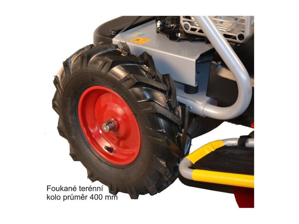 | Pneumatiky: | veľké nafukovacie kolesá 420 mm so šípovým vzorom |