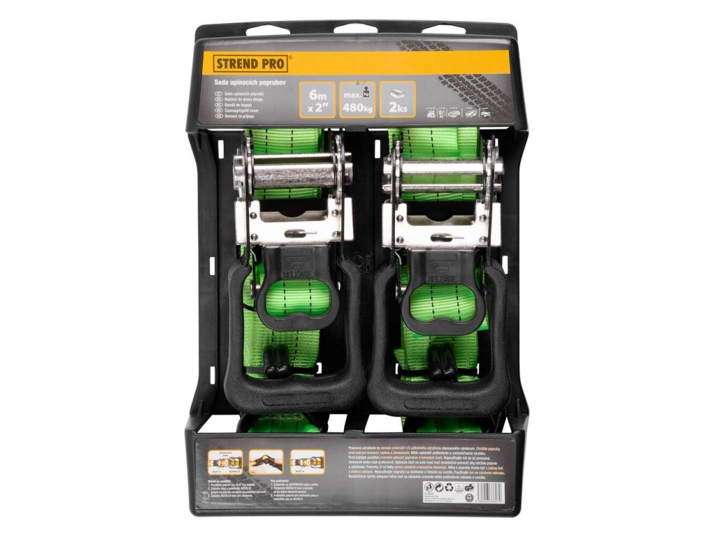 Upínací popruh Strend Pro má široké spektrum využitia. Slúži na zviazanie tovaru, zavetrovanie konštrukcií, na kotvenie stanov, koncertných stage-ov a podobne. Jeho dĺžka je 6 m a maximálna nosnosť je 480 kg. Balenie obshuje 2 ks.Technické parametre: