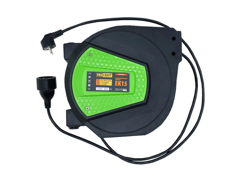 Predlžovačka ProCraft EK15 je navrhnutá pre tých, ktorí potrebujú extra dosah a spoľahlivosť pri práci. S dĺžkou kábla 15 metrov a maximálnym výkonom 1500 W zabezpečuje efektívne napájanie aj na veľkých plochách. Vhodná do vonkajšieho prostredia a navyše vybavená systémom automatického navíjania, aby sa zabránilo zamotaniu kábla.