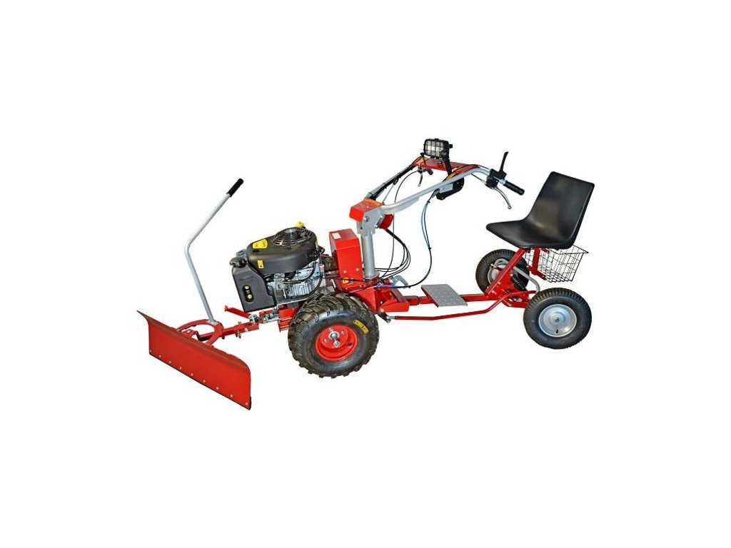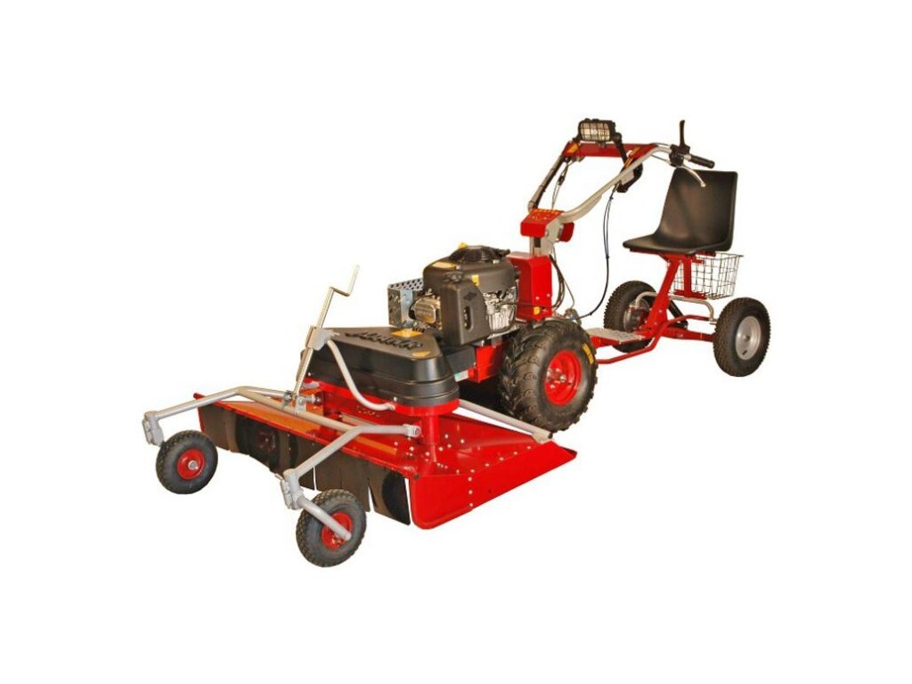Profesionálna odpružená sedačka s riadenými kolesami, ktorá vytvára v spojení s pohonnou jednotkou štvorkolesový traktor vhodný aj do náročnejšieho terénu. Kolesá sedačky sa ovládajú riadidlami pohonnej jednotky. Tým sa dosiahne to, že nemusíte zatáčať ťažkou pohonnou jednotkou s pracovným nástavcom, ako u iných strojov, ale celou zostavou zatáčate ľahko natočením kolies sedačky. Polomer zatáčania je pritom veľmi malý a preto je celá zostava veľmi obratná a hodí sa aj do záhrad a sadov, kde je potrebné obchádzať kmene stromov. Tým, že za kosačkou nemusíte ísť, tak môžete kosiť aj tak, kde by ste sa kvôli nízkym vetvám nedostali.