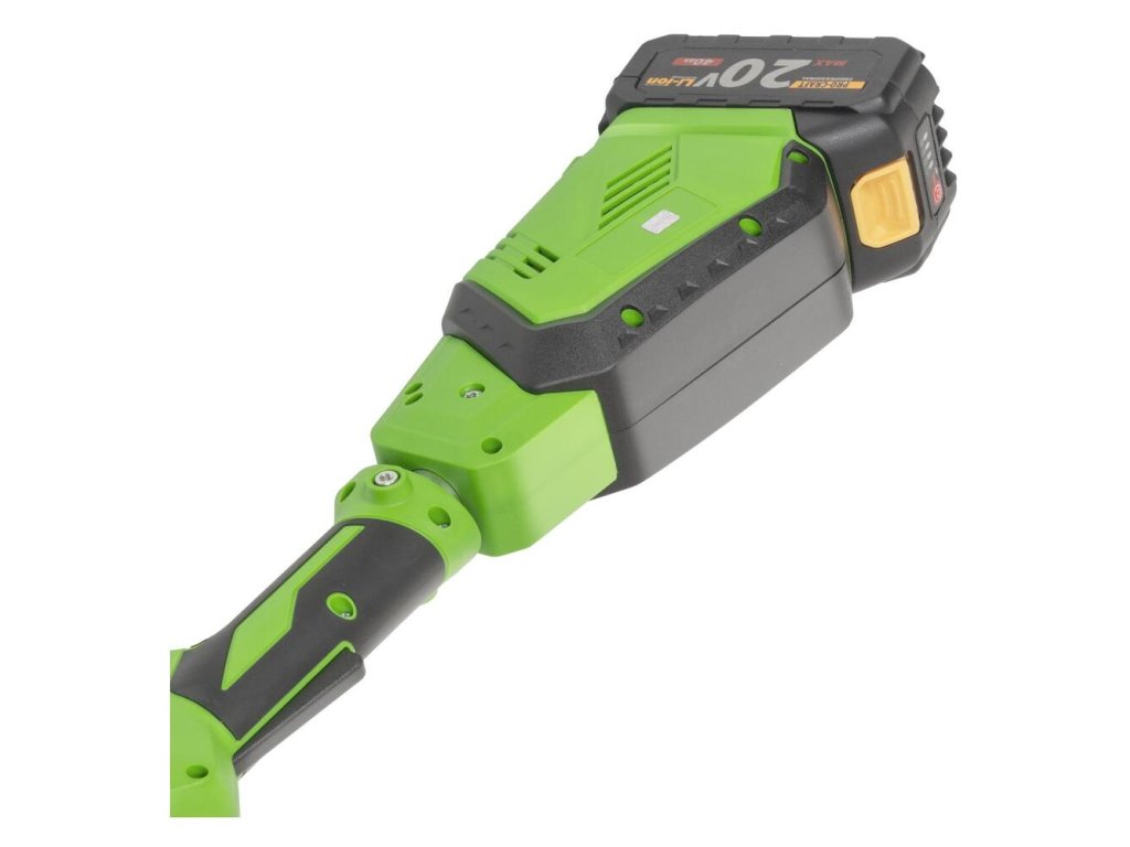 - Akumulátory 20 V, 4 Ah - krovinorez je napájaný 2 akumulátormi s kapacitou 20 V a 4 Ah, čo zaisťuje dostatočnú výdrž na dlhšiu prácu.