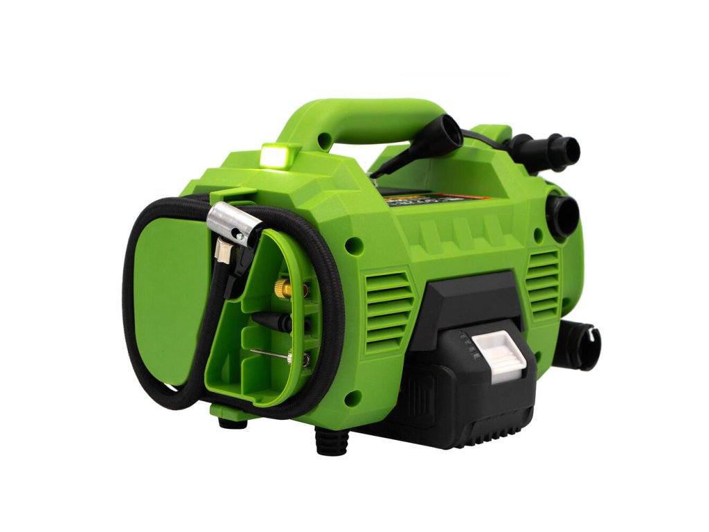 - Vďaka svojej kompaktnosti, nízkej hmotnosti a akumulátorovému pohonu je tento kompresor s pištoľou mimoriadne univerzálny a ideálny na úlohy, kde je potrebná mobilita a prístup k stlačenému vzduchu bez závislosti od elektrickej siete.