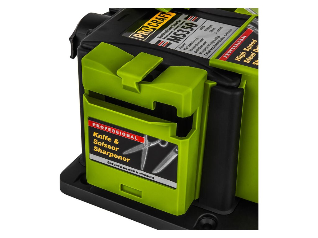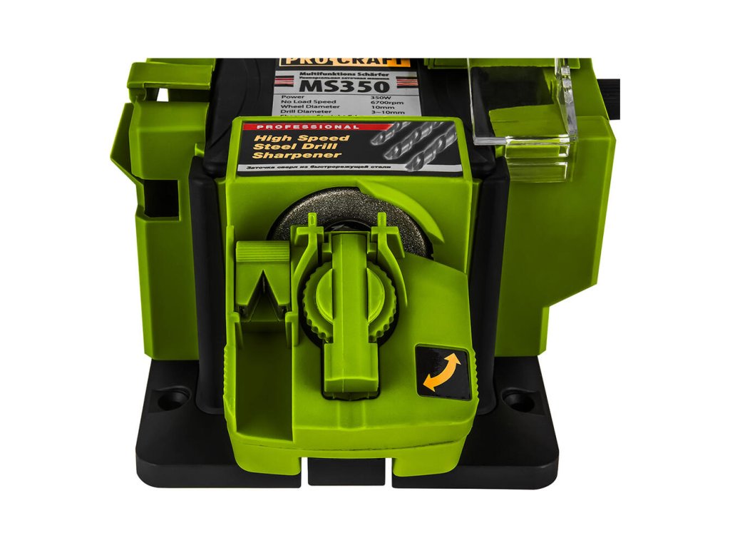 Viacúčelová brúska Procraft MS350 je určená na ostrenie nožov alebo nožníc, tvarovanie a ostrenie hrotov špirálových vrtákov, hobľovacích nožov, brúsnych nožov a dlát. Diamantový brúsny kotúč a robustný 65 W motor umožňujú kvalitné spracovanie.