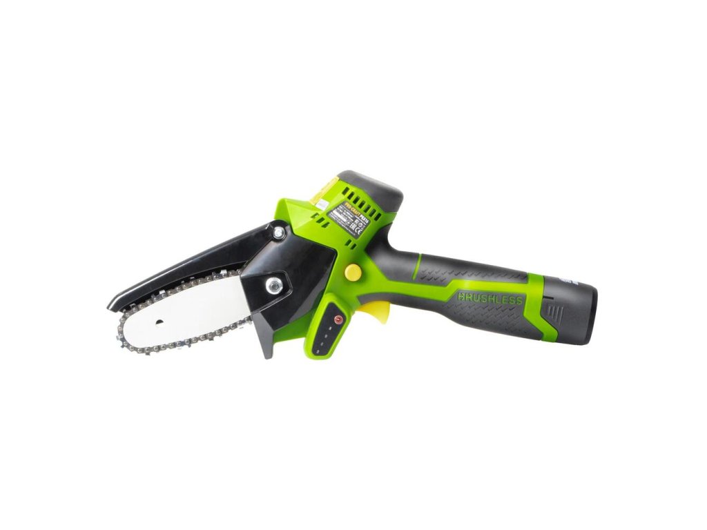 Pri svojich skromných rozmeroch má píla značnú výkonovú rezervu, ktorú zabezpečuje bezkartáčový motor v spojení so 16-voltovým akumulátorom, čo umožňuje vykonávať rezy po celej dĺžke vodiacej lišty bez preťaženia alebo zaseknutia.