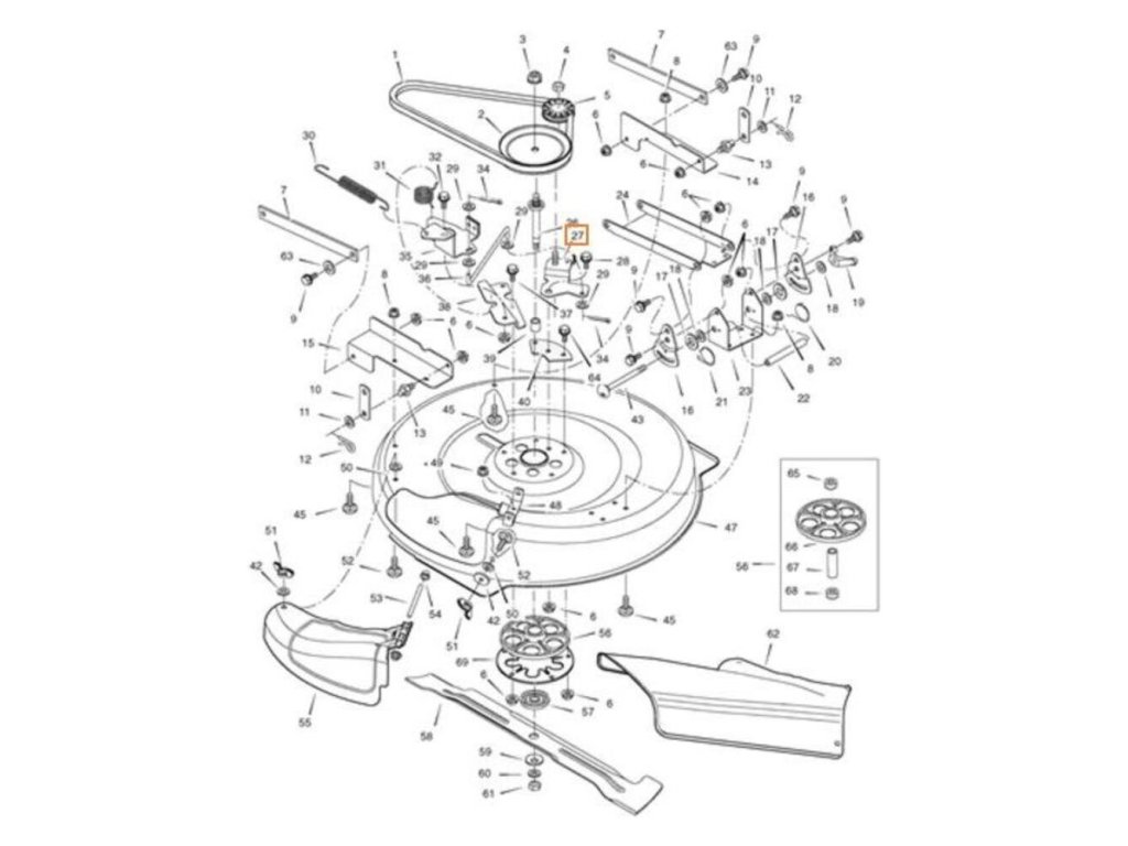 Dôležitá súčasť mechanizmu spojky kosenia alebo pojazdu. Ak je toto rameno ohnuté alebo prasknuté, remeň nebude správne napnutý a môže spadnúť.