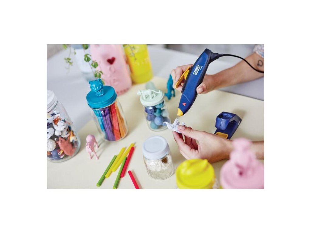 Táto univerzálna lepiaca pištoľ v tvare pera je ideálna na použitie okolo domu rovnako ako v umeleckých a remeselníckych projektoch. Ponúka lepšie uchopenie a dlhú spúšť pre plynulejšie, presnejšie lepenie a väčšiu kontrolu pri práci na ťažkých alebo zložitých dieloch. Ohreje sa iba za 60 sekúnd a dodáva sa so stabilným stojanom pre praktické, bezpečné skladovanie bez prilepenia medzi jednotlivými použitiami. Lepiaca pištoľ je navrhnutá pre rad 7 mm transparentných a farebných lepiacich tyčiniek, čo z nej robí dokonalý nástroj pre množstvo aplikácií.